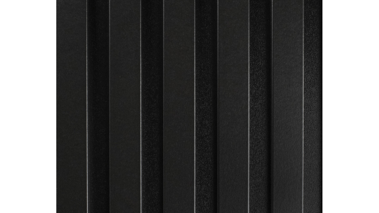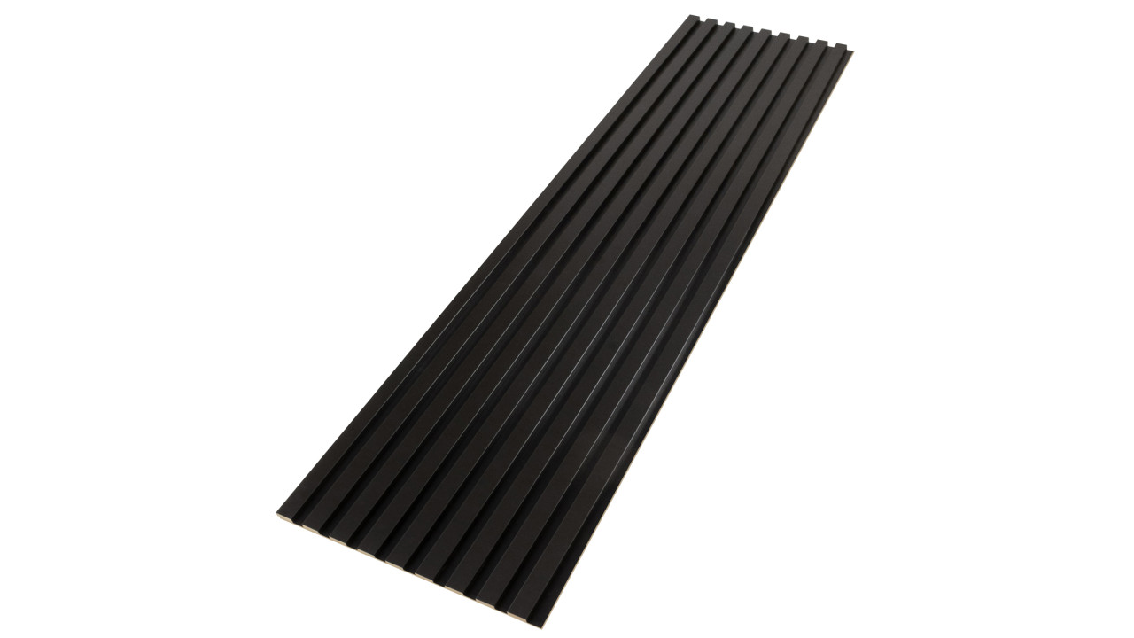 - Panel o wymiarach 275x40,5x1,46cm składający się z 9 szt. lameli w kolorze BLACK 905 przymocowanych do czarnej płyty HDF.