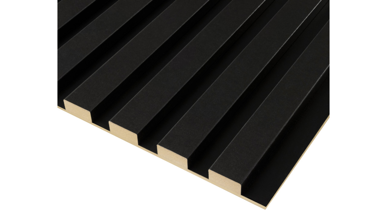 Lamele na czarnej płycie HDF – panel dekoracyjny, akustyczny 275x40,5x1,46cm – BLACK 905