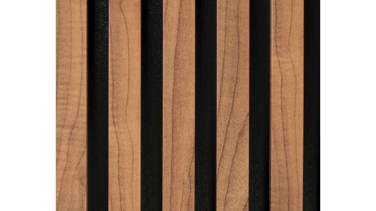 - Panel o wymiarach 275x40,5x1,46cm składający się z 9 szt. lameli w kolorze PECAN 169 przymocowanych do czarnej płyty HDF.