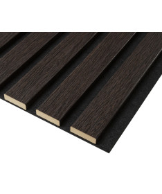 - 2 panel o wymiarach 275cm x 27cm składający się z pięciu sztuk lameli (listew) w kolorze Melbac 715 przymocowanych do czarnego filcu