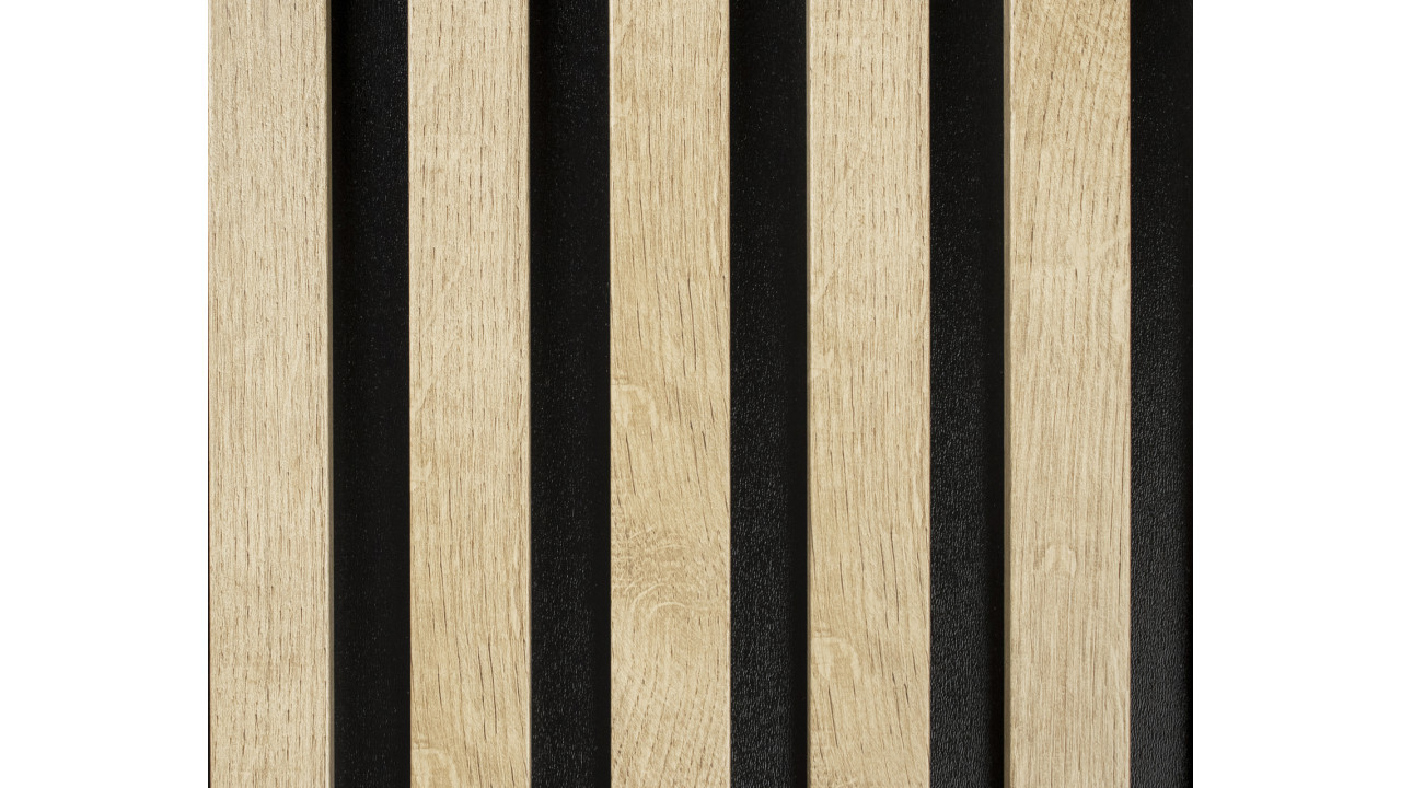 Lamele na czarnej płycie HDF – panel dekoracyjny, akustyczny 275x40,5x1,46cm – DĄB SANTA 661