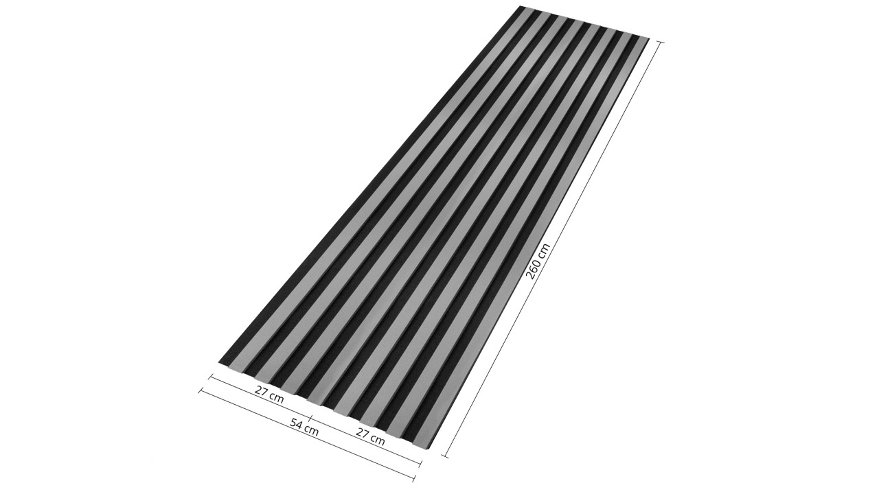 Kupując 1 sztukę "Lamele ścienne, akustyczne na czarnym filcu 260cm x 54cm Popielaty 458" otrzymasz: