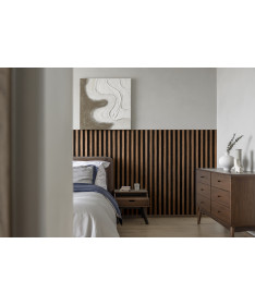 - Poprawa Akustyki: Dzięki zastosowaniu specjalnie zaprojektowanych lameli, nasze panele skutecznie rozpraszają i pochłaniają fale dźwiękowe, co znacząco poprawia akustykę w pomieszczeniu.