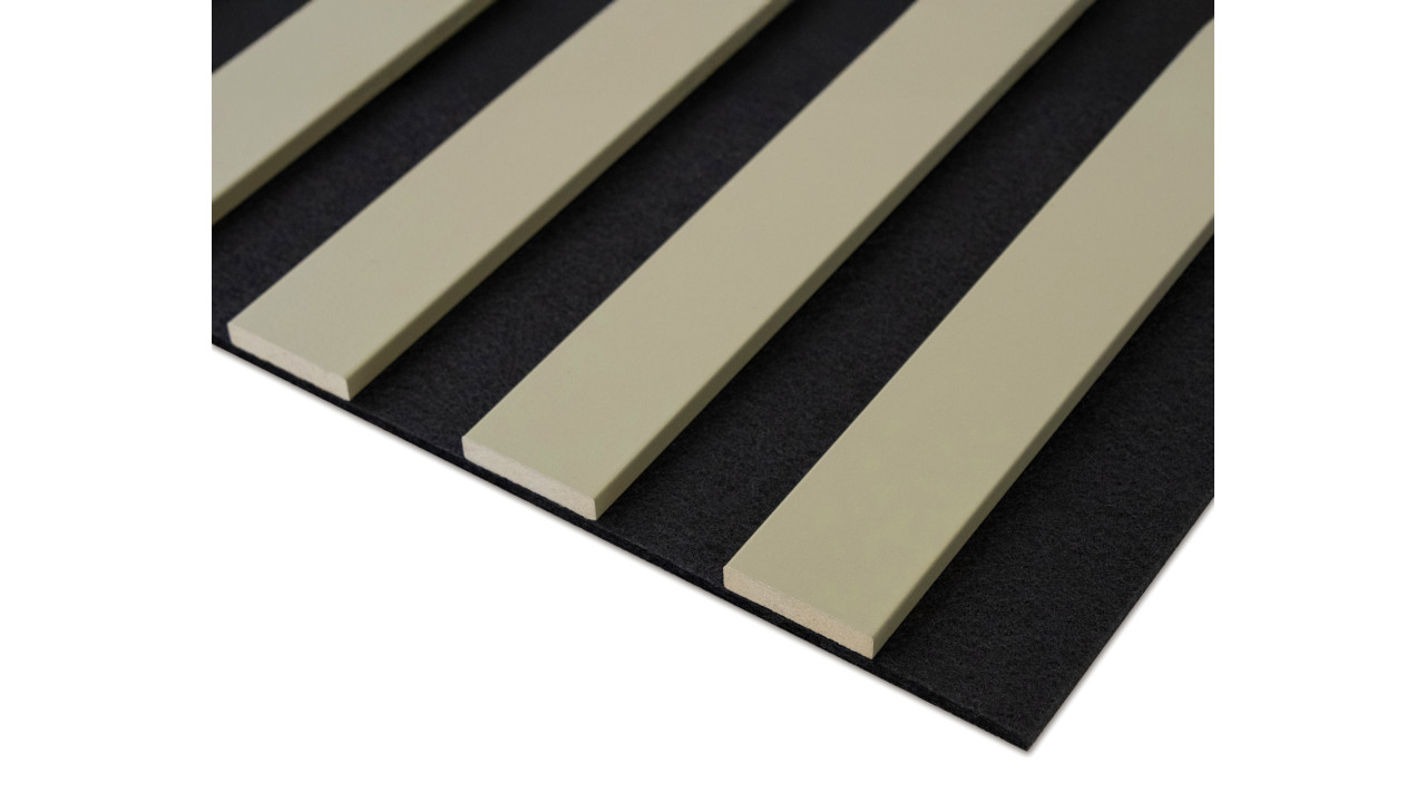 -2 sztuki paneli o wymiarach 260cm x 27cm składających się z czterech sztuk lameli (listew) w kolorze Oliwkowa Zieleń 881 przymocowanych do czarnego filcu