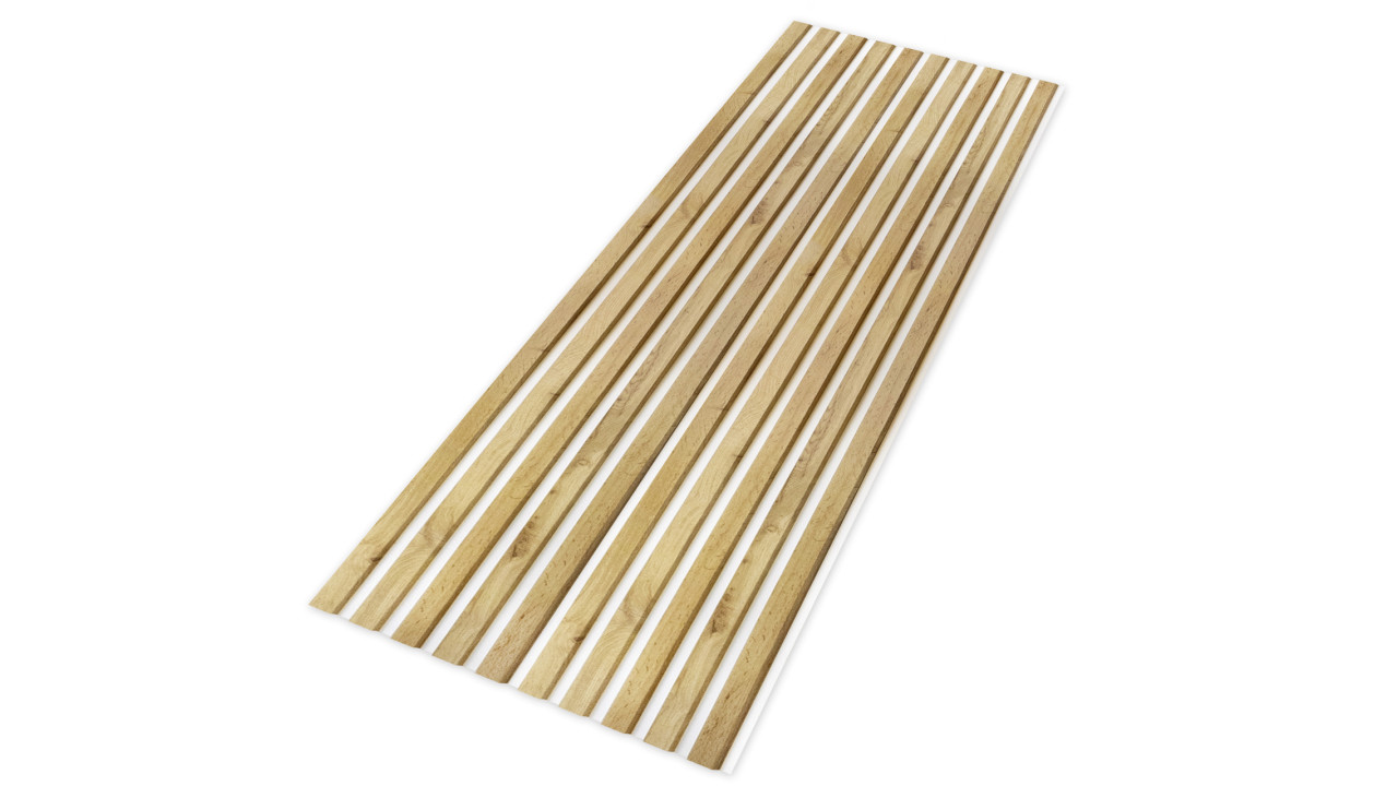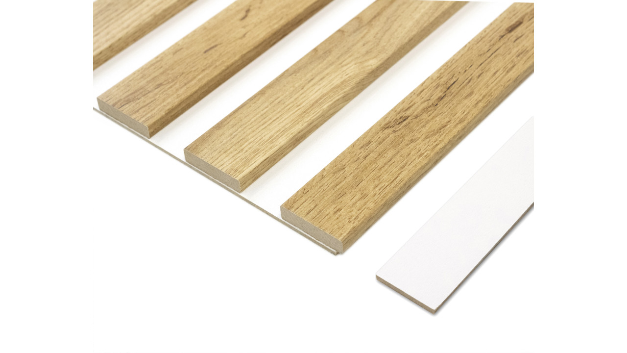 Kupując przedmiot ,,Lamele ścienne na białej płycie HDF - 275 cm x 59,5 cm - Dąb Wotan 279” otrzymasz: