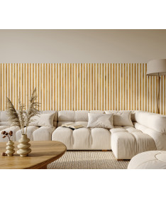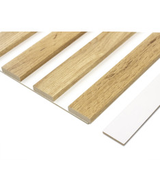 Lamele ścienne na białej płycie HDF - 275 cm x 59,5 cm - Dąb Wotan 279